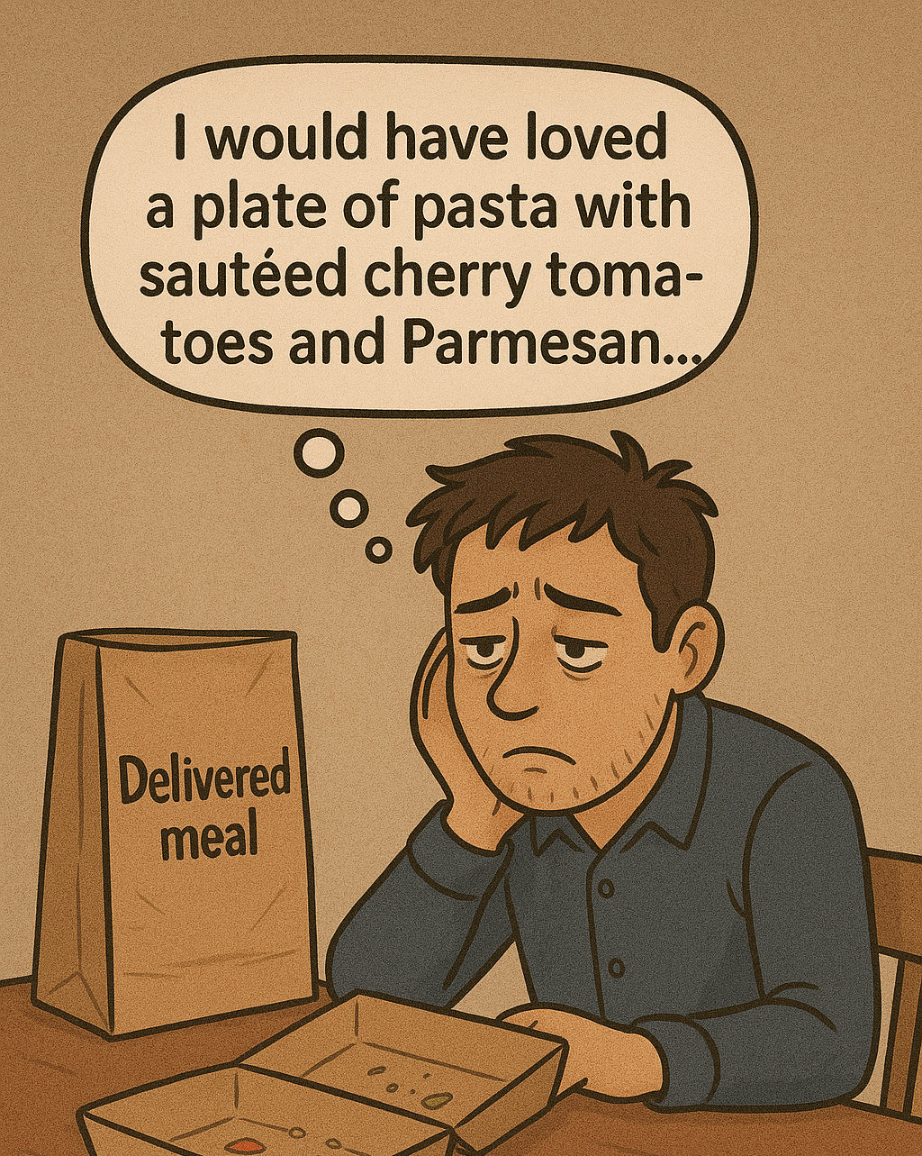 And after eating yet another disappointing takeout meal—one that left you unsatisfied and, let's be honest, kind of sick of it (you and your wallet!)—you find yourself thinking how much you would’ve loved to enjoy a delicious plate of pasta with sautéed cherry tomatoes, freshly grated Parmesan on top, and a nice glass of wine... maybe Italian.